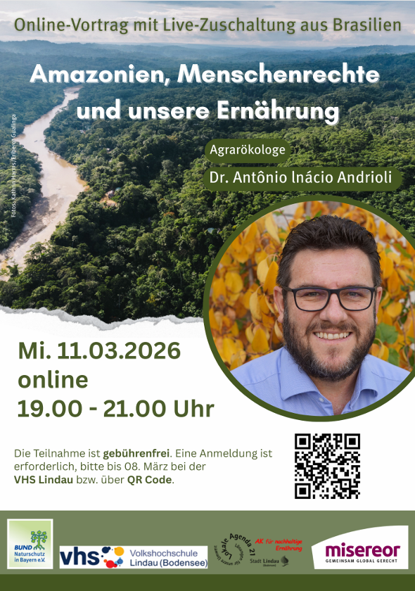 Prof. Dr. Antônio Inácio Andrioli – Brasilianer mit bayerisch-südtirolischen Wurzeln und Träger der höchsten Auszeichnung des BUND Naturschutz – berichtet in diesem Online-Vortrag der vhs Lindau über die aktuelle Situation.